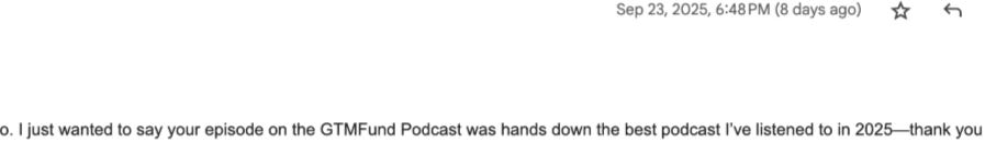 • GTMfund Dinner (private registration): October 22, 2025 (Austin, TX)