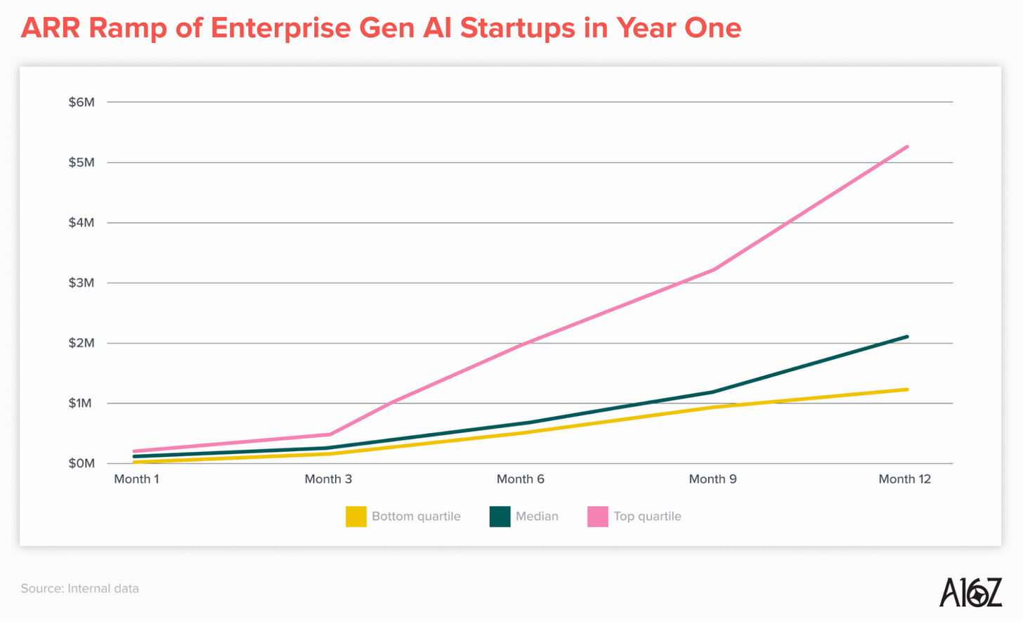 The median B2B AI startup is getting to $2M+ in ARR in their first 12 months of monetization. The median. The top quartile is getting to $5M+ in ARR in their first 12 months. The previous benchmark for “great” was $1M ARR in the first 12 months.
