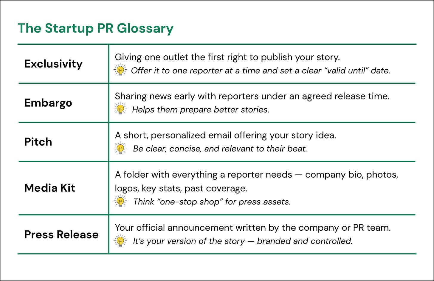 Before we get into the process, this is a helpful glossary of PR terms to know: